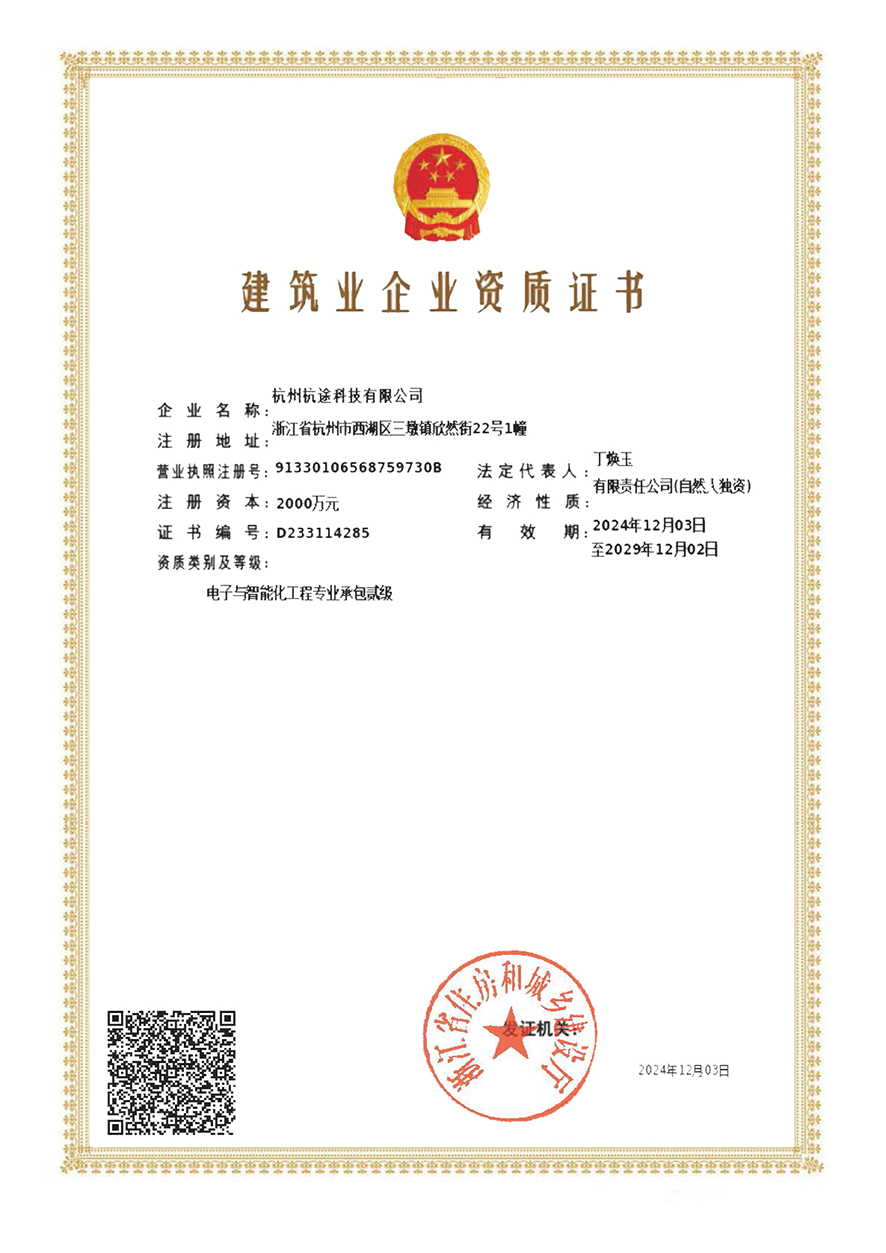 憑借卓越的軟硬件自主研發實力,杭途科技榮獲國家級專利10余項、軟件著作權50余項,多款產品通過權威機構檢測。同時,我們擁有電子與智能化專業承包二級等多項專業領域資質,科技研究成果豐碩,多個項目入選市級、省級科研項目及應用推廣目錄。