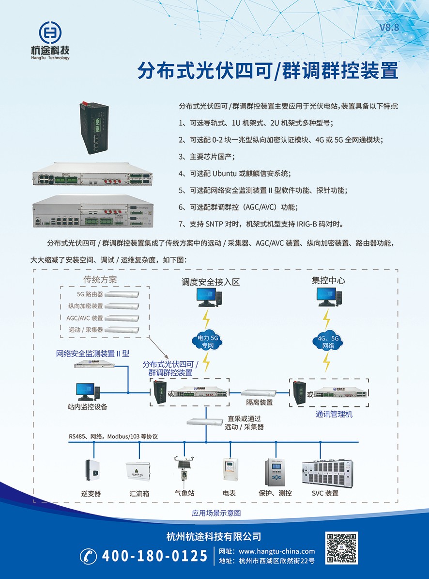 分布式光伏四可/群調群控裝置主要應用于光伏電站,裝置具備以下特點: